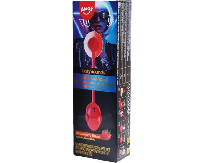 TASTY SOUNDS Lutscher mit Erdbeergeschmack und Musik – Hip-Hop-Musik 12g